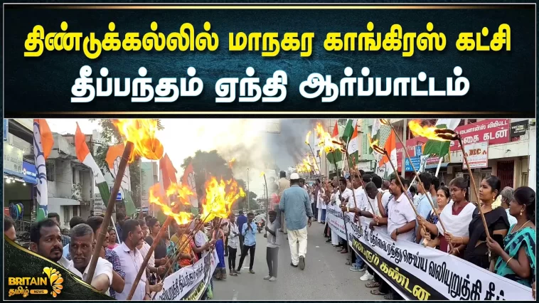 திண்டுக்கல்லில் மாநகர காங்கிரஸ் கட்சி சார்பில் தீப்பந்தம் ஏந்தி ஆர்ப்பாட்டம்