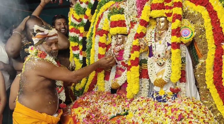முன்னதாக நாதஸ்வர மேள தாள மங்கல வாத்தியங்கள் முழங்க, மாலை மாற்றும் நிகழ்வும், தொடர்ந்து கங்கனம் கட்டுதல், புணுல் அணிவித்தல், நலுங்கு வைத்தல், பட்டு வஸ்திரங்கள் சமர்பித்தல், சீர்வரிசை தட்டுக்கள் சமர்பித்தல் ஆகியவை நடைபெற்ற பின்னர், புனிதநீர் கடத்தை ஸ்தாபித்து, சிவச்சாரியார்கள் ஹோமம் வளர்த்து, வேத மந்திரங்கள் ஜபித்து, பைரவி கழுத்தில் திருமாங்கல்யம் பூட்ட, பைரவேஸ்வரர் திருக்கல்யாணம் வெகு சிறப்பாக நடைபெற்றது, இதில் ஏராளமான பெண்கள் உட்பட ஆயிரக்கணக்கானோர் கலந்து கொண்டு சுவாமி தரிசனம் செய்து மகிழ்ந்தனர்.