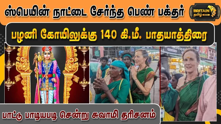 ஸ்பெயின் நாட்டை சேர்ந்த பெண் பக்தர் 140 கி மீ பாதயாத்திரையாக பழனி கோயிலுக்கு சுவாமி தரிசனம்
