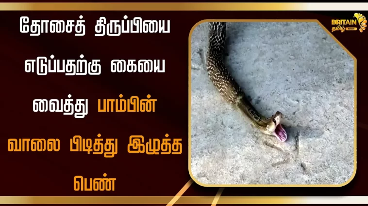 தோசைத் திருப்பியை எடுப்பதற்கு கையை வைத்து பாம்பின் வாலை பிடித்து இழுத்த பெண் பதட்டத்தில் மயக்கம் அக்கம் பக்கத்தினரிடையே பரபரப்பு