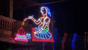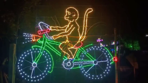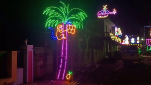 வியக்க வைக்கும் அலங்கார மின் விளக்குகள். மரத்தில் குரங்கு ஏறுவது, பெண் கை பம்பில் தண்ணீர் அடிப்பது, குரங்கு சைக்கிள் ஓட்டுவது, ஹெலிகாப்டர் சுற்றுவது உள்ளிட்ட பல்வேறு விதமாக வியக்க வைக்கும் அலங்காரம் மின்விளக்குகளை செய்து அசத்தும் இளைஞர்.