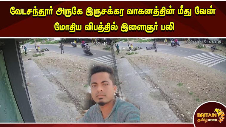 வேடசந்தூர் அருகே இருசக்கர வாகனத்தின் மீது வேன் மோதிய விபத்தில் இளைஞர் பலி உறவினர் படுகாயம் – விபத்தின் சிசிடிவி காட்சிகள் வெளியாகி பரபரப்பு