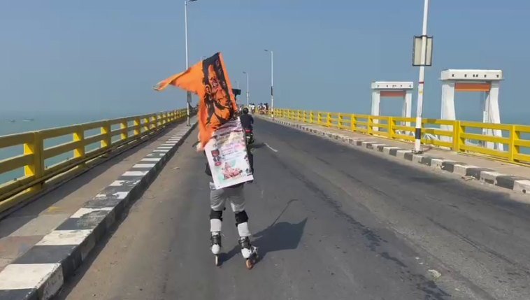 இந்து மதத்தின் பழமையான, நித்தியமான மற்றும் அழியாத கோட்பாடுகளைக் குறிக்கும் சனாதான தர்மத்தை இந்தியா முழுவதிலும் உள்ள மக்கள் மத்தியில் எடுத்துரைக்கவும், இந்தியா முழுவதும் உள்ள 12 ஜோதிர்லிங்கங் கோவில்களில் தரிசனம் செய்வதற்காக உத்தரப்பிரதேசம் மாநிலத்தைச் சேர்ந்த கணையா (30) என்ற இளைஞர் கடந்த நான்கு மாதங்களுக்கு முன்பு ஸ்கேட்டிங் முறையில் பயணத்தை தொடங்கினார்.