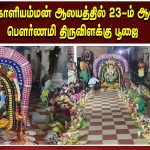 மேலும் உற்சவ அம்மனுக்கு பலவித மலர்களைக் கொண்டு அலங்காரம் செய்யப்பட்டு உட்பிரகாரத்தில் பக்தர்கள் தரிசனம் செய்து வந்தனர் மாலை 6 மணியளவில் உற்சவ அம்மனுக்கு பம்பை மேளதாளம் முழங்க திருவிளக்கு பூஜை நடைபெற்றது.