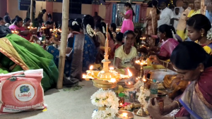 தொடர்ந்து அம்மனுக்கு தீபாரதனை காட்டப்பட்ட பின்னர் திருவிளக்கிற்கு பெண்கள் தீபாரதனை காண்பித்து சிறப்பு வழிபாடு செய்தனர். இதனை தொடர்ந்து பக்தர்களுக்கு பிரசாதம் வழங்கப்பட்டது.