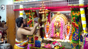 தொடா்ந்து சஷ்டி மண்டபத்தில் கும்ப பூஜை டைபெற்றது. தொடாந்து யாகசாலையில் சங்கல்பம் மூலமந்திர ஹோமங்கள் பூர்ணாகுதி நடைபெற்றது.தொடா்ந்து ஊச்சிக்கால பூஜைக்காக மூலவா் மற்றும் ஆறுமுகருக்கு 16வகை அபிஷேக பொருட்களான மாபொடி, மஞ்சள் பொடி, வாசனைபொடி, பால், தயிா், பஞ்சாமிருதம், தேன், இனநீா், கரும்புச்சாறு வீபூதி, அண்ணம் பன்னீா் சந்தணம் கொண்டு அபிஷேகம் நடைபெற்றது.