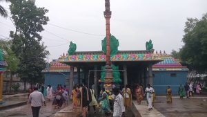 சுவாமியை தரிசனம் செய்த பக்தர்களும், பொதுமக்களும் கொட்டும் மழையிலும் கலந்து கொண்டு கோயிலை சுற்றி வலம் வந்தனர்.