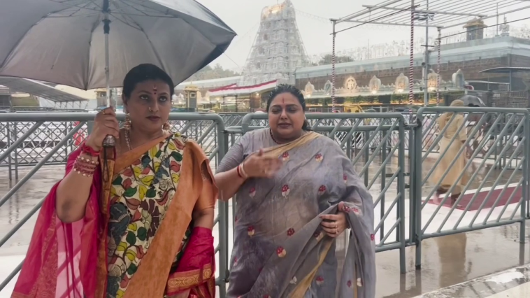 திருப்பதி ஏழுமலையான் கோவிலில் ஆந்திர முன்னாள் அமைச்சரும் நடிகையும் ஆன ரோஜா மற்றும் முன்னணி நடிகை ரவளி சுவாமி தரிசனம் செய்தார்.