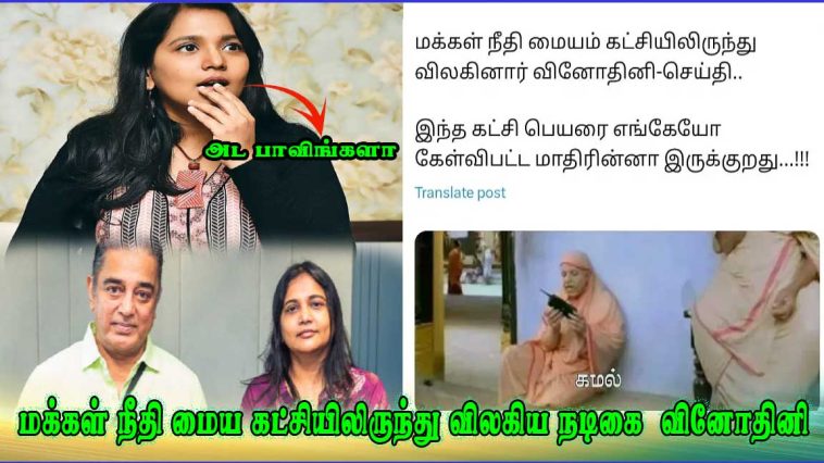 மக்கள் நீதி மைய கட்சியிலிருந்து விலகிய நடிகை வினோதினி