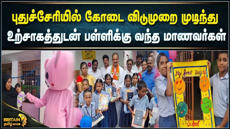 ஆனால் புதுச்சேரியில் கடுமையான வெயில் காரணமாக கோடை விடுமுறையானது ஜூன் 11வரை நீடிக்கப்பட்டது. இதனையடுத்து இன்று முதல் புதுச்சேரியில் உள்ள அரசு மற்றும் தனியார் பள்ளிகள் மீண்டும் திறக்கப்பட்டன.