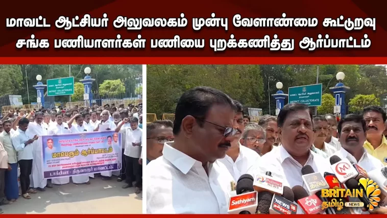 மாவட்ட ஆட்சியர் அலுவலகம் முன்பு 500க்கும் மேற்பட்ட தொடக்க வேளாண்மை கூட்டுறவு சங்க பணியாளர்கள் பணியை புறக்கணித்து 26 அம்ச கோரிக்கைகளை வலியுறுத்தி ஆர்ப்பாட்டம்