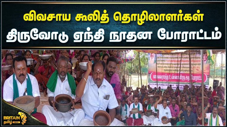 விவசாய கூலித் தொழிலாளர்கள் கையில் திருஓடு ஏந்தி பிச்சை எடுக்கும் நூதன போராட்டம்