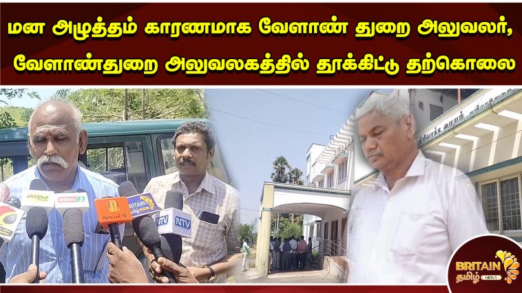 சனி ஞாயிறு விடுமுறை கிடையாது வேளாண்துறை அறிவிப்பால், விடுமுறை கிடைக்காமல் மன அழுத்தம் காரணமாக பாதிக்கப்பட்ட வேளாண் துறை அலுவலர், வேளாண்துறை அலுவலகத்தில் தூக்கிட்டு தற்கொலை உடலை கைப்பற்றி காவல்துறையினர் விசாரணை :-