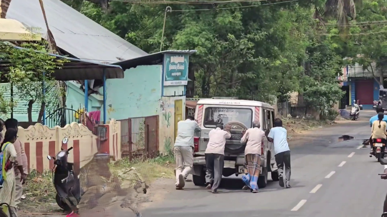 ஏ…தள்ளு… தள்ளு… தள்ளு…. நடுரோட்டில் பழுதான நாகை வட்டாட்சியர் வாகனம்