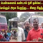 நிறுத்தாமல் செல்லும் அரசு பேருந்தை சிறை பிடித்து போராட்டம்