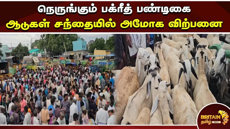 பக்ரீத் பண்டிகை முன்னிட்டு செஞ்சி வார சந்தையில் ஆடுகள் விற்பனை அமோகம். 6 கோடி விற்பனை என தகவல்