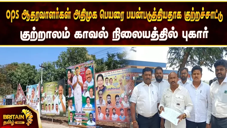 தென்காசிக்கு ஓ.பன்னீர்செல்வம் வருகையை ஒட்டி அவரை வரவேற்கும் விதமாக ஆதரவாளர்கள் அதிமுக பெயரை பயன்படுத்தியதாக குற்றச்சாட்டு – ஆலோசனைக் கூட்டத்திற்கு தடை கோரியும் அவர்கள் மீது சட்ட நடவடிக்கை எடுக்க கோரி குற்றாலம் காவல் நிலையத்தில் அதிமுக வழக்கறிஞர் பிரிவு சார்பில் புகார்