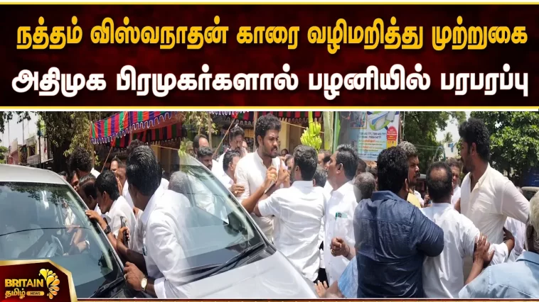 பழனியில் அதிமுக துணை பொது செயலாளர் நத்தம் விஸ்வநாதன் காரை வழிமறித்து முற்றுகையிட்ட அதிமுக பிரமுகர்கள். ஒருவரை ஒருவர் தாக்கிக் கொண்டதால் பரபரப்பு.