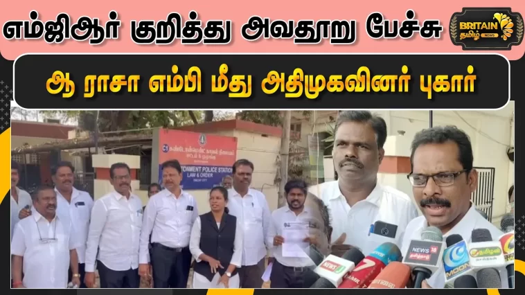 எம்ஜிஆர் குறித்து அவதூறு பேச்சு – ஆ ராசா எம்பி மீது அதிமுகவினர் காவல் நிலையத்தில் புகார்..