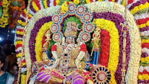 அதன் பின் வண்ண மலர்கள் , தங்க கவச அலங்காரம் செய்து சர்க்கரை பொங்கல், சுண்டல் பல்வேறு வகையான பழங்களை கொண்டு நெய்வேத்தியமும் அதனைத் தொடர்ந்து தீபாராதனையும் நடைபெற்றது.