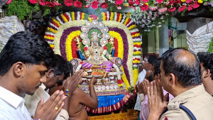 அதன் பின் வண்ண மலர்கள் , தங்க கவச அலங்காரம் செய்து சர்க்கரை பொங்கல், சுண்டல் பல்வேறு வகையான பழங்களை கொண்டு நெய்வேத்தியமும் அதனைத் தொடர்ந்து தீபாராதனையும் நடைபெற்றது.