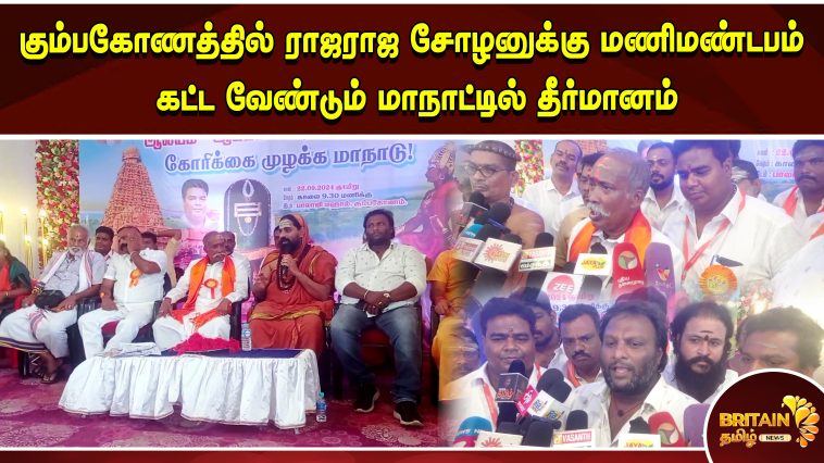 கும்பகோணத்தில் ராஜராஜ சோழனுக்கு மணிமண்டபம் கட்ட வேண்டும் என அகில பாரத இந்து மகா சபா ஆலய பாதுகாப்பு பிரிவு சார்பில் நடந்த மாநாட்டில் தீர்மானம்…..