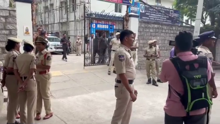 அல்லு அர்ஜுன் வருகையை முன்னிட்டு சிக்கடபள்ளி காவல் நிலையம் பகுதியில் போலீஸ் பாதுகாப்பு பலப்படுத்தப்பட்டுள்ளது.