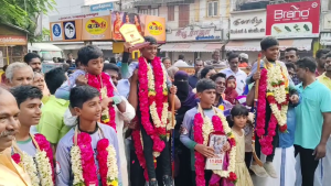 வெற்றி பெற்று ஊர் திரும்பிய மாணவர்களுக்கு சமூக ஆர்வலர்கள் பெற்றோர்கள் உற்சாக வரவேற்பு.