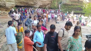 திருப்பதி மலையில் உள்ள பாப விநாசம் பகுதியில் இருந்து சுமார் 5 கிலோ மீட்டர் தொலைவில் அடர்ந்த வனப்பகுதியில் பிளவு பட்ட மலைகளுக்கு இடையே பள்ளத்தாக்கில் இருக்கும் குமாரதார தீர்த்தத்திற்கு நேற்று பல்லாயிரக்கணக்கான பக்தர்கள் மிகுந்த பிரயாசையுடன் சென்றனர்.