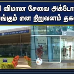 புதுச்சேரி விமான சேவை அக்டோபர் மாதம் துவங்கும் என நிறுவனம் தகவல்