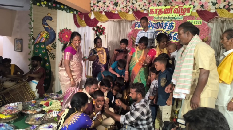 இந்த விழாவிற்கு பாண்டியராஜனின் சகோதரி பாண்டிசெல்வி தனது சகோதரன் மகன்களுக்கு சீர் வரிசைகளை ஊர்வலமாக எடுத்துச் சென்றார்