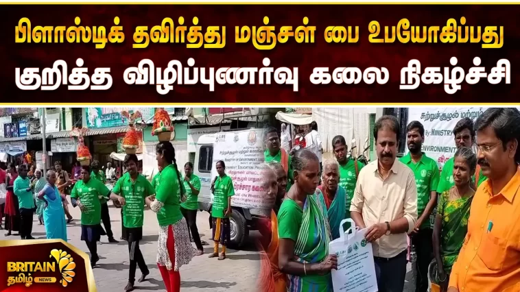 பிளாஸ்டிக் பொருள்களை தவிர்த்து மஞ்சள் பை உபயோகிப்பது குறித்த விழிப்புணர்வு கலை நிகழ்ச்சி