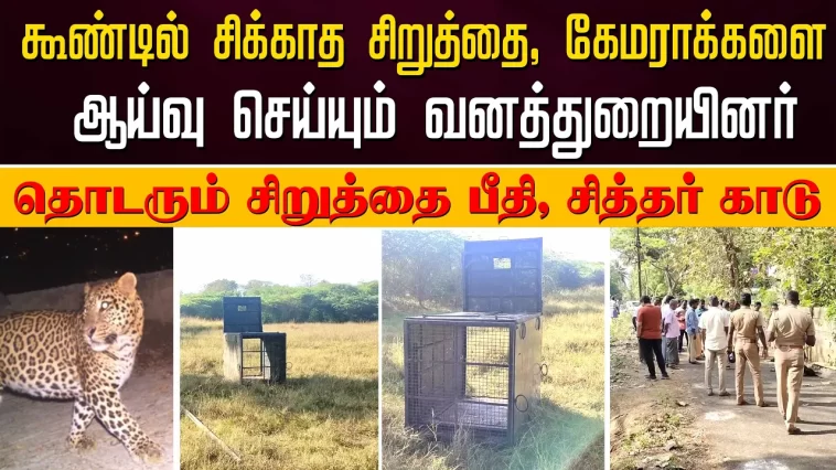 கூண்டில் சிக்காத சிறுத்தை, கேமராக்களை ஆய்வு செய்யும் வனத்துறையினர், தொடரும் சிறுத்தை