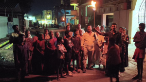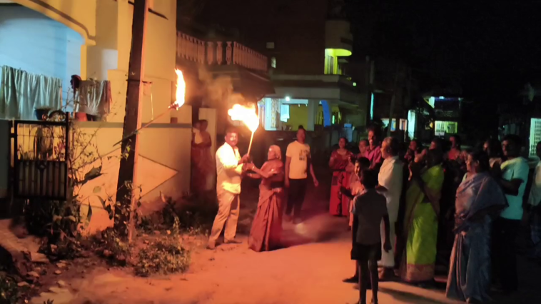 தெரு விளக்குகளை சீரமைக்காததால் ஆத்திரமடைந்த கிராம மக்கள் தீப்பந்தம் ஏற்றி எச்சரிக்கை போராட்டம்