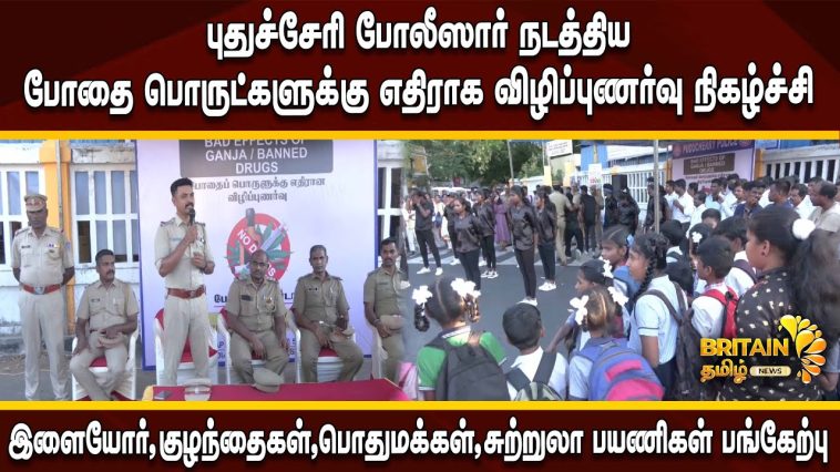 இந்தநிலையில் புதுச்சேரி அண்ணா சிலை அருகே ஒதியஞ்சாலை காவல் நிலையம் சார்பில் போதை தடுப்பு விழிப்புணர்வு நிகழ்ச்சி மாலை நடந்தது. நிகழ்ச்சியில் பள்ளி மாணவ-மாணவிகள் பலர் கலந்துகொண்டு சிலம்பம், காரத்தே உள்ளிட்ட சாகச நிகழ்ச்சிகளை செய்து காண்பித்தனர். அதேபோல் நடன நிகழ்ச்சியும் நடந்தது. அப்போது மாணவர்கள் போதை பொருட்கள் தடுப்புக்கு எதிராக விழிப்புணர்வு வாசகங்கள் அடங்கிய பாதாகைகள் ஏந்தி பொதுமக்களுக்கு விழிப்புணர்வு ஏற்படுத்தினர்.