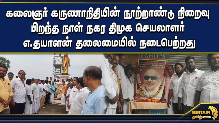திருவண்ணாமலை மாவட்டம், வந்தவாசியில், தமிழ்நாடு முன்னாள் முதல்வர் கலைஞர் கருணாநிதியின் நூற்றாண்டு நிறைவு பிறந்த நாள் நகர திமுக செயலாளர் எ.தயாளன் தலைமையில் நடைபெற்றது.நகர அவைத் தலைவர் நவாப் ஜான் முன்னிலை வகித்தார்.