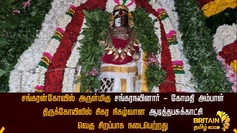 சங்கரன்கோவில் அருள்மிகு சங்கரநயினார்- கோமதி அம்பாள் திருக்கோயிலில் சிகர நிகழ்வான ஆடித்தபசுக்காட்சி வெகு சிறப்பாக நடைபெற்றது. ஆயிரக்கணக்கான பக்தா்கள் தாிசனம் செய்தனா்.