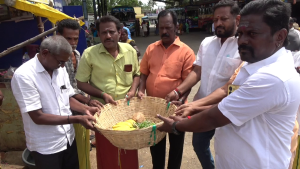இதனை தொடர்ந்து பக்தர்கள் முகூர்த்த காலை நடும் வைபவத்தை நடத்தினர் இதில் பக்தர்கள் கலந்து கொண்டனர்.