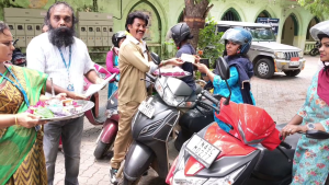 பெண்கள் மத்தியில் ரஜினியின் பஞ்ச் டயலாக்கை பேசி ஹெல்மேட் குறித்து விழிப்புணர்வை ஏற்படுத்தினார்.