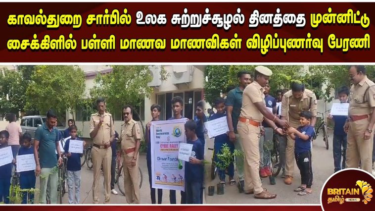 காவல்துறை சார்பில் உலக சுற்றுச்சூழல் தினத்தை முன்னிட்டு சைக்கிளில் விழிப்புணர்வு பேரணி