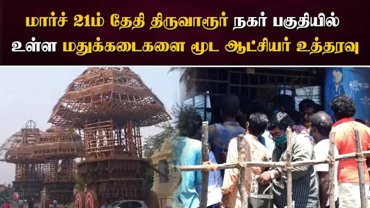இந்த நிலையில் மாவட்ட ஆட்சியர் சாரு ஸ்ரீ மார்ச் 21 தேர்த் திருவிழா அன்று திருவாரூர் நகர் பகுதியில் உள்ள மதுக்கடைகளை மூட உத்தரவிட்டுள்ளார்.