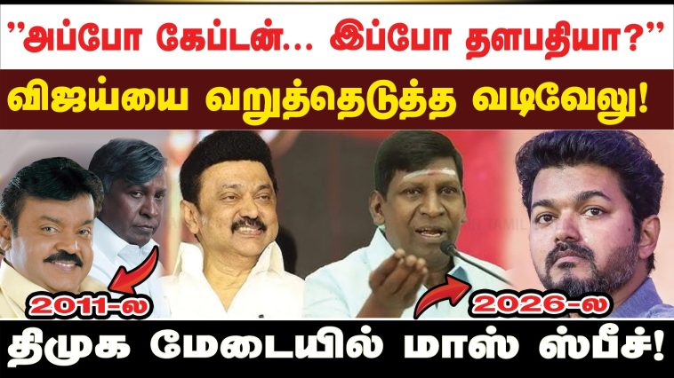 நகைச்சுவை நடிகர் வடிவேலு சினிமால மட்டும் இல்ல, இப்போ அரசியல் மேடைகளையும் தன்னோட நக்கல் நையாண்டியால அதிர வச்சுட்டு இருக்காரு. சமீபத்துல நடந்த ஒரு தி.மு.க நிகழ்ச்சியில கலந்துகிட்ட ‘வைகைப்புயல்’, தமிழக வெற்றிக் கழகத் தலைவர் விஜய்யை செமயா கலாய்த்துப் பேசினது இப்போ பெரிய விவாதமாகியிருக்கு.