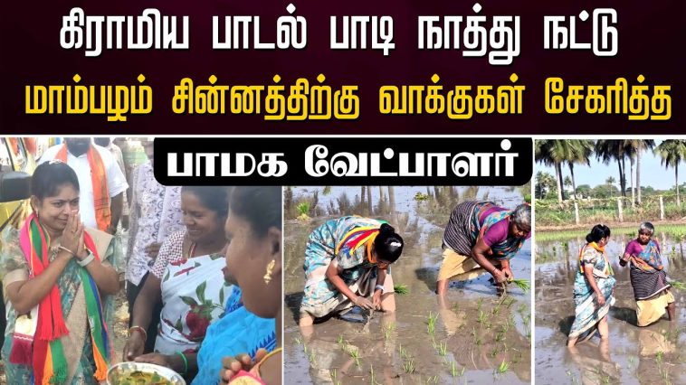 விவசாய பெண்மணியாக _ மாறி பெண் விவசாயிகளுடன் சேர்ந்து கிராமிய பாடல் பாடி நாத்து நட்டு மாம்பழம் சின்னத்திற்கு வாக்குகள் சேகரித்த பாமக வேட்பாளர் திலகபாமா