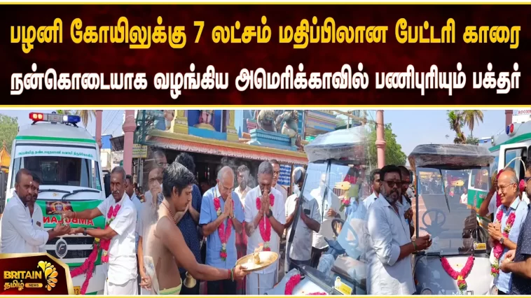 பழனி கோயிலுக்கு அமெரிக்காவில் பணிபுரியும் முருக பக்தர் 7 லட்சம் மதிப்பிலான பேட்டரி காரை நன்கொடையாக வழங்கினார்