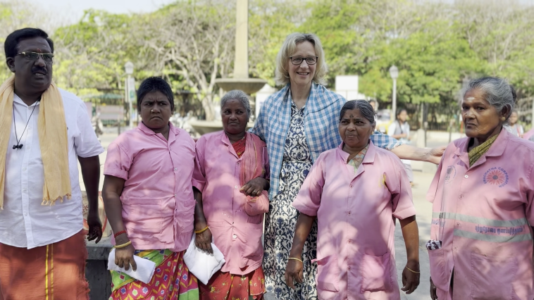 மகளிர் தினத்தை ஒட்டி பெண் துப்புரவாளர்களுக்கு மரியாதை செலுத்திய சமூக ஆர்வலர்…தானாக முன்வந்து கவுரவித்த பெல்ஜியம் நாட்டு சுற்றுலா பயணிகள்..