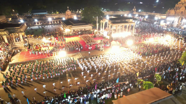 1,039 வது சதய விழாவினை முன்னிட்டு மாணவர்களின் பரதம், குச்சிப்புடி, கோலாட்டம், மயிலாட்டம், சிலம்பம் உள்ளிட்ட நடன நிகழ்ச்சியில் 1,039 மாணவ – மாணவிகள் பங்கேற்பு.