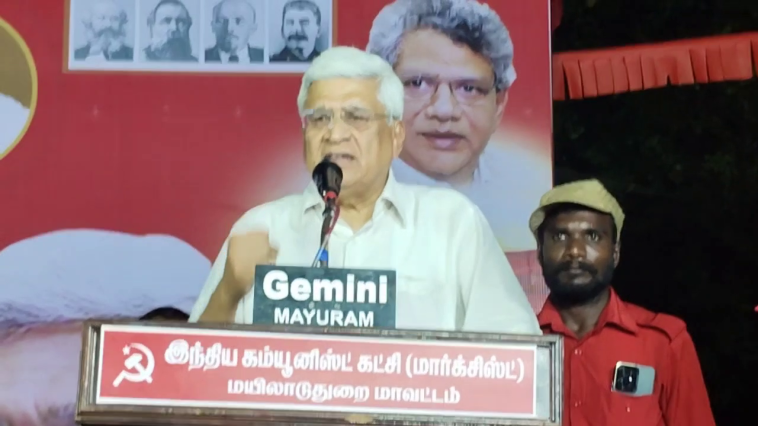 இந்தியா கூட்டனி பலமான எதிர்கட்சியாக உள்ளதால் பா.ஜ.க ஆட்சி தினிக்க நினைக்கின்ற R.S.S. சிந்தாந்தம் செயல்படுத்த முடியவில்லை என சி.பி.ஐ (எம்) மூத்த தலைவர் பிரகாஷ்காரத் பேச்சு.