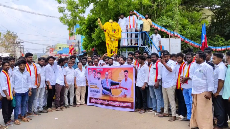 அண்ணல் அம்பேத்கரின் 134-வது பிறந்தநாளை முன்னிட்டு, பா.ஜ.க மற்றும் த.வெ.கயினர் அம்பேத்கர் சிலைக்கு மாலை அணிவித்து மலரஞ்சலி செய்தனர்.