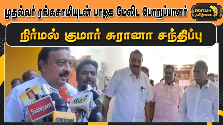 முதல்வர் ரங்கசாமியுடன் பாஜக மேலிட பொறுப்பாளர் நிர்மல் குமார் சுரானா