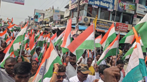 செஞ்சியில் பாஜகவினர் தேசியக்கொடியை ஏந்தி யாத்திரை பேரணி